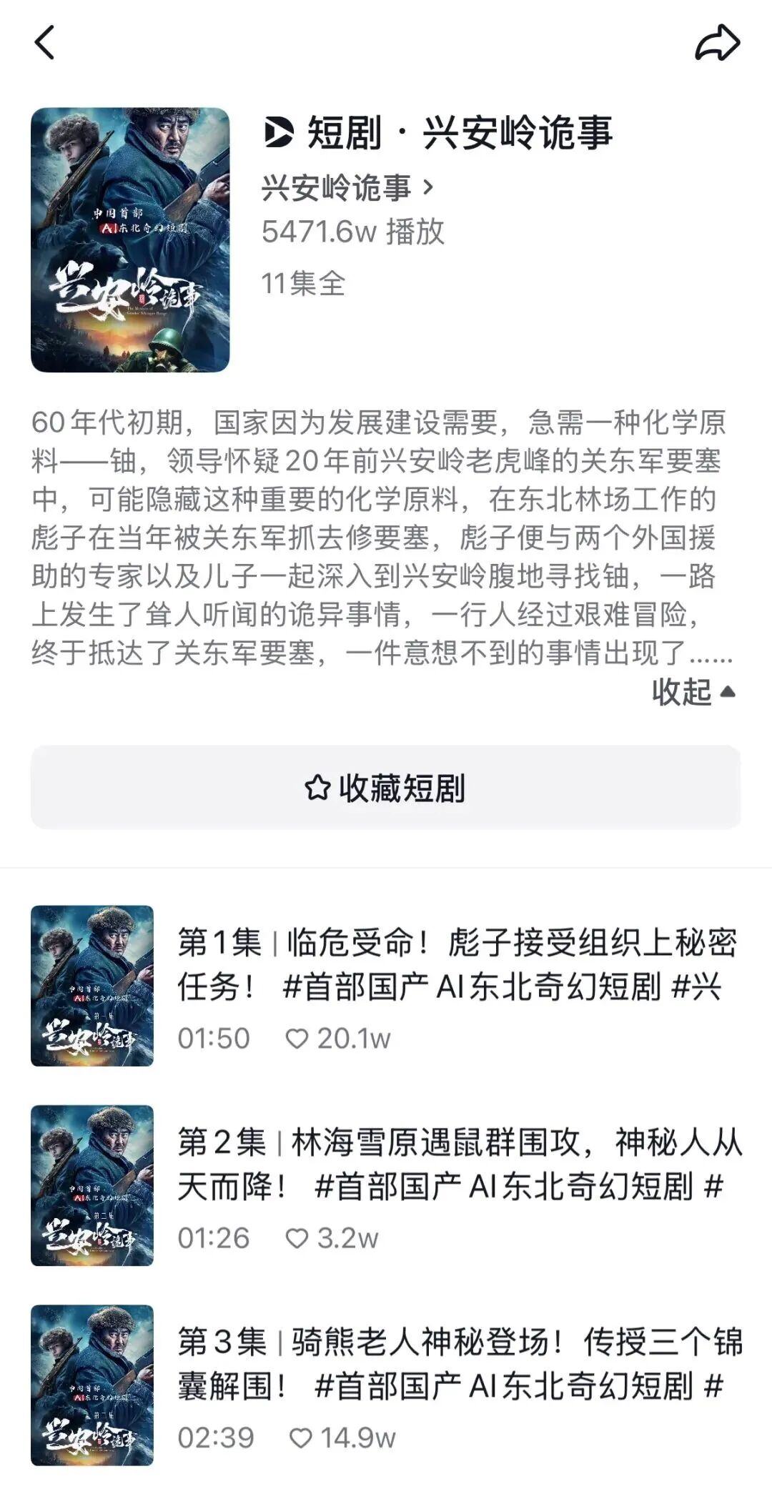即梦通过“AIGC短剧招募计划”大力扶持AI短剧创作,为精品内容提供单部最高50%-70%的投资比例,最高投资金额可达200万元。这种策略已经初见成效:首部AI付费短剧《兴安岭诡事》在抖音上线后,三天播放量突破3000万。